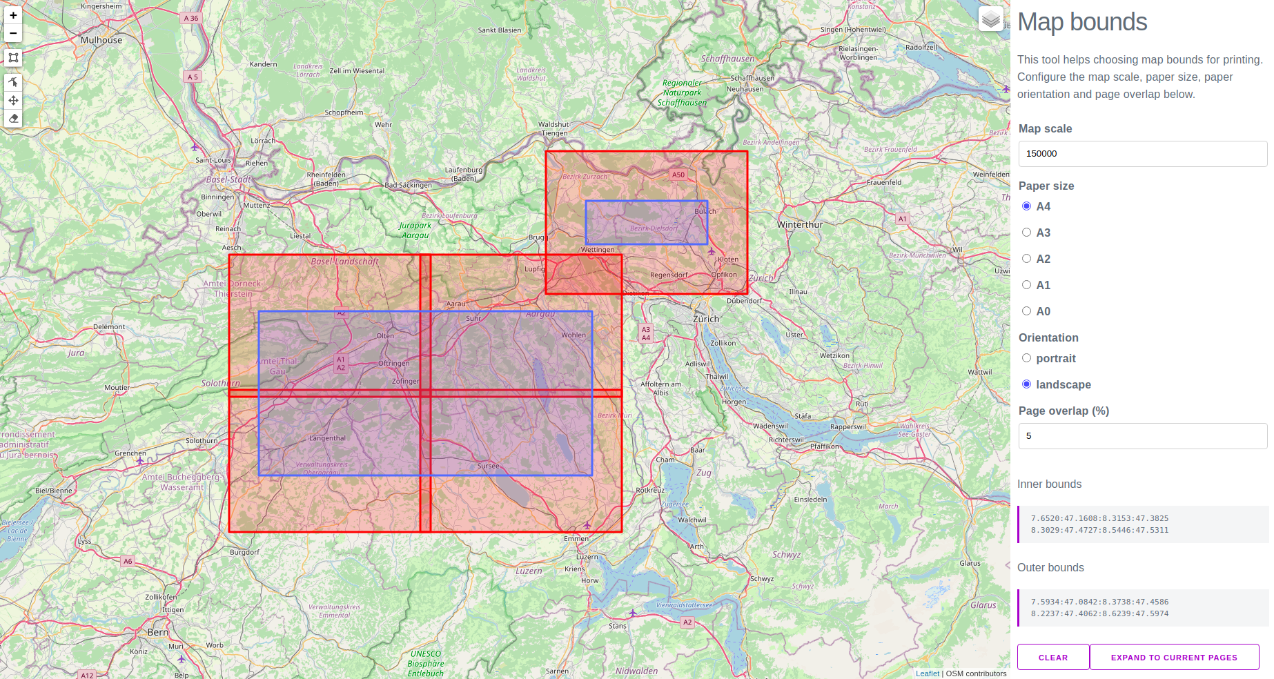 In addition to the visual tool, the script container hiddewie/map-it-bounds can be used. This commandline tool contains the same logic in the visual tool and as in the map generation script. The output will contain the bounding boxes for each page that will be generated. These values can be used for other commands.